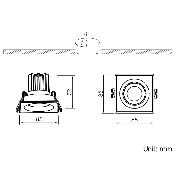 | IBSP151SCT075H72 | 8W | L85*W85*H72mm | L75×W75mm | Reflector 20°| 40°|60° Lens 15°| 24°|36°|50° (Adjustable:vertical 30°) |