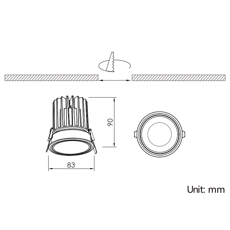 | IBSP100CT075H90 | 15W | Ø83mm×H90mm | Ø75mm | Reflector 15°| 24°|38°|45°|60° (Fixed |