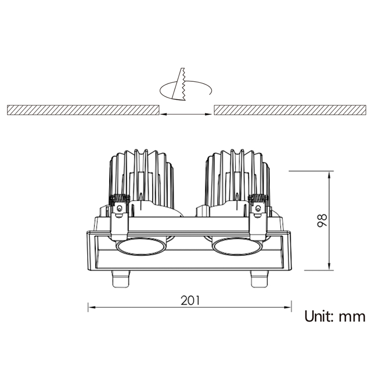 | IBSP104SCT095H78-2F-EB | 2x10W | L201×W106xH78mm | L190×W95mm | Reflector 15°| 24°|38°|45° (horizontal 355°+vertical 30°) |