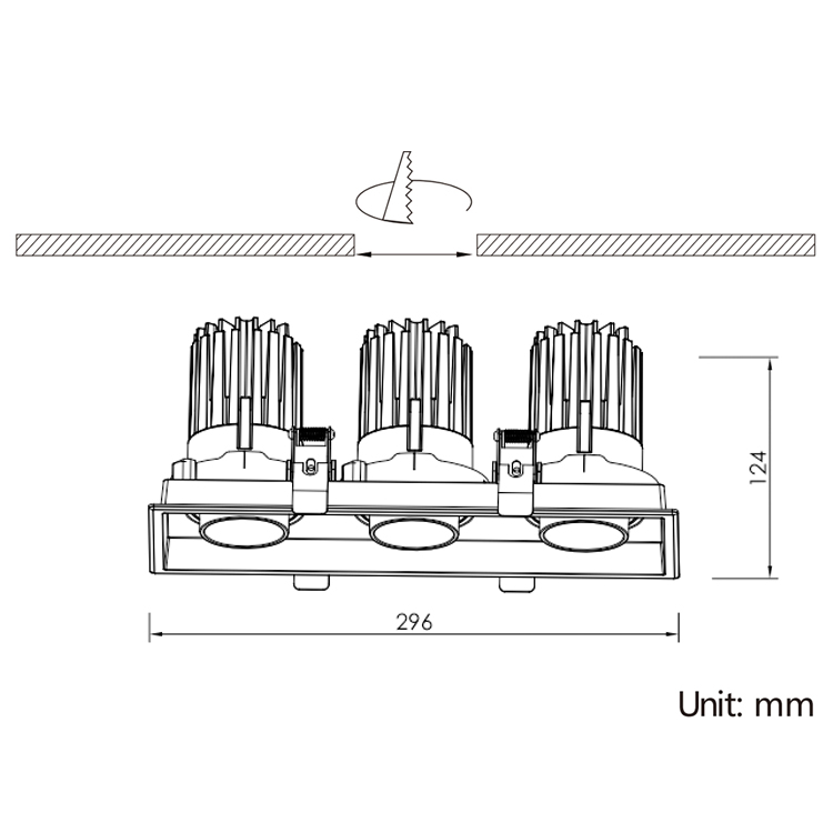 | IBSP104SCT095H78-3F-EB | 3x10W | L296×W106xH78mm | L285×W95mm | Reflector 15°| 24°|38°|45° (horizontal 355°+vertical 30°) |