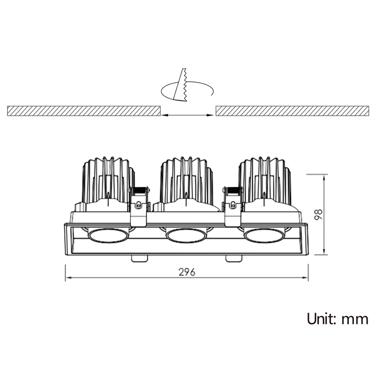 | IBSP104SCT095H78-3F-EB | 3x10W | L296×W106xH78mm | L285×W95mm | Reflector 15°| 24°|38°|45° (horizontal 355°+vertical 30°) |