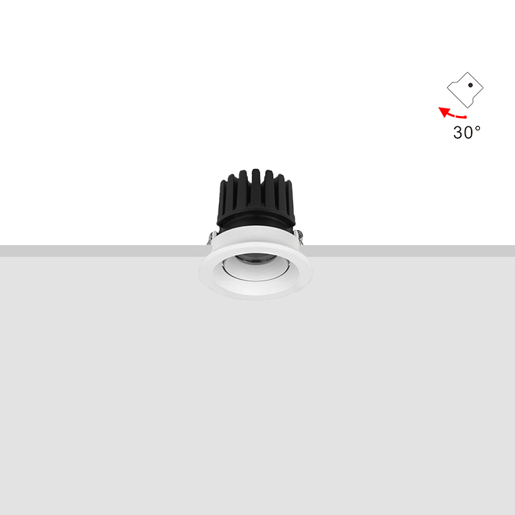 15W,Cutout 75mm,Beam15°/24°/38°/45°/60°,100lm/W,Adjustable +/-30°,IP65 with Glass Diffuser,Honeycomb louver Optional,Shallow Trim Recessed LED Downlight