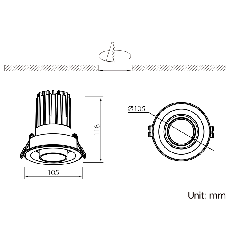 Model No.WattsLamp Outer SizeCutout Hole SizeBeam Angle