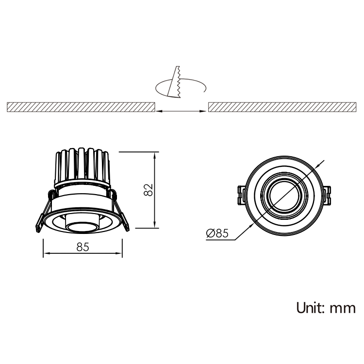 | IBSP151CT075H78-EB | 8W | Ø85*H78mm | Ø75mm | Reflector 20°| 40° Lens 15°| 24°|36° (Adjustable:vertical 30°) |